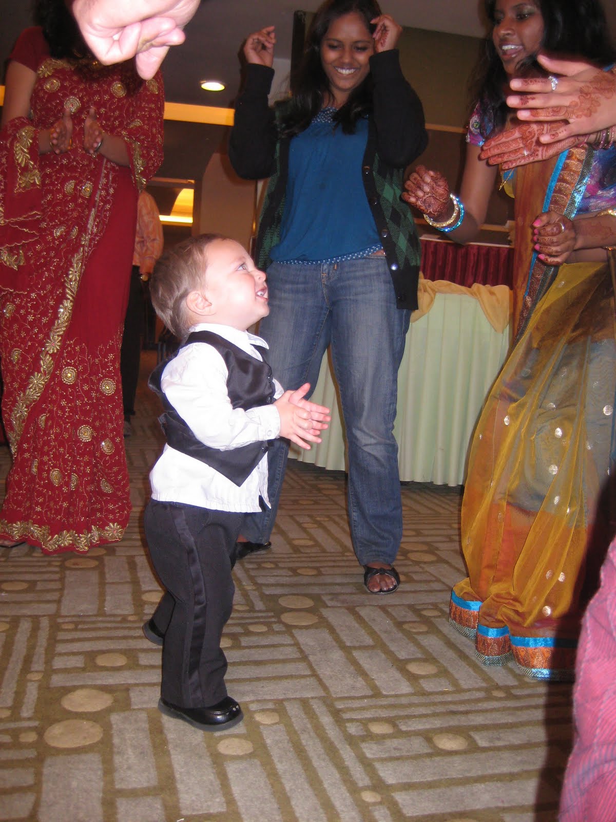 Carter's favorite part of the night by far was the dancing. It was so funny cause I was feeding him his dinner and before he finished, the music turned on and he saw everyone gather in a group to dance and all he kept saying was dance! I don't think I've ever seen him climb out of his seat so fast, run over and just start bouncing up and down. It was hilarious! And he went all night long!!